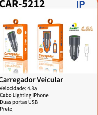 CAR-5212 CARREGADOR VEICULAR RAPIDO
