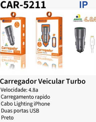CAR-5211 CARREGADOR VEICULAR