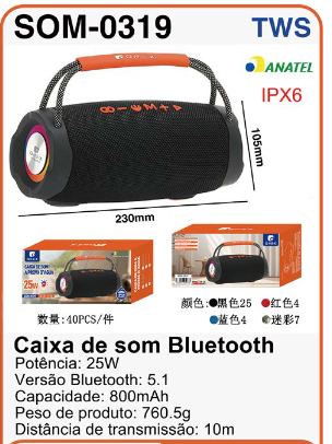 SOM-0310 CAIXA DE SOM PORTATIL