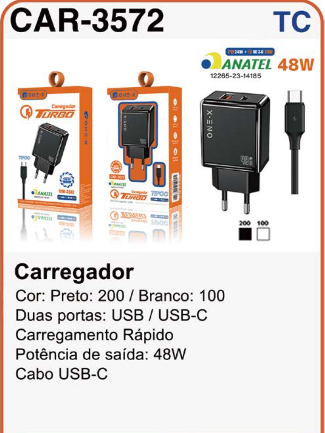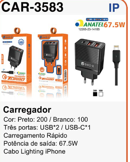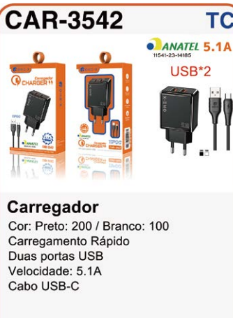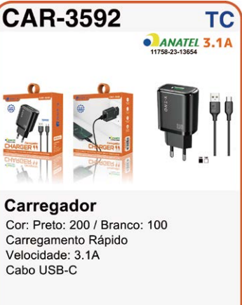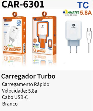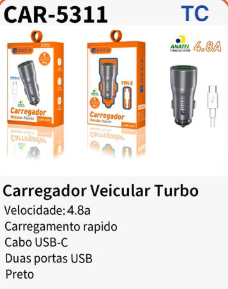 CAR-6301 CARREGADOR TIPO C
