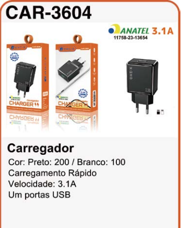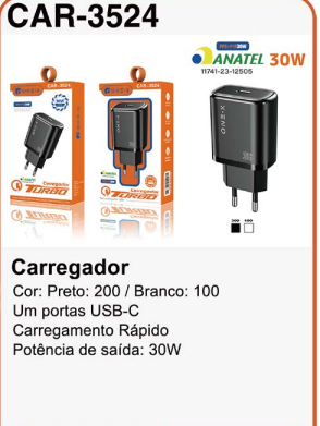CAR-6304 CARREGADOR TIPO C