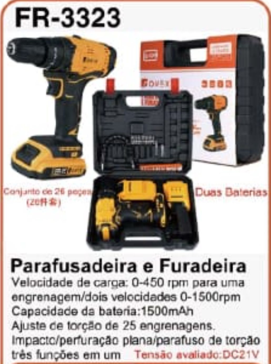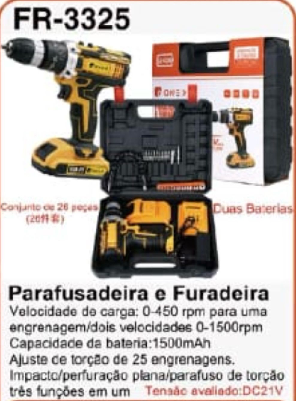FR 3333 1300MAH FURADEIRA ELETRICA LITICO