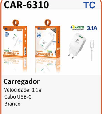 CAR-6310 CARREGADOR TIPO C