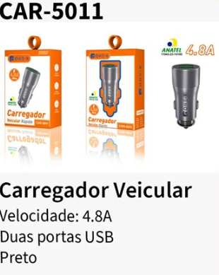 CAR-5011 CARREGADOR VEICULAR RAPIDO