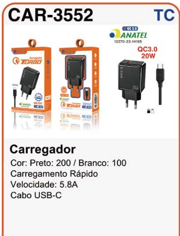 CAR-6306 CARREGADOR TIPO C