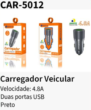 CAR-5012 CARREGADOR VEICULAR RÁPIDO
