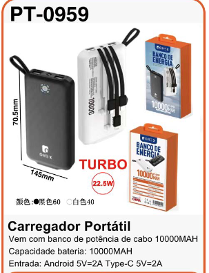 PT 0964 10000MAH ENERGIA MOVEL PORTATIL