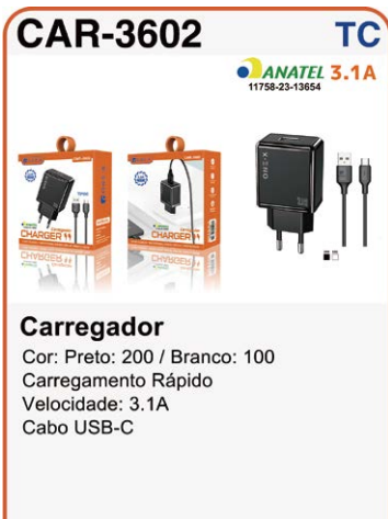 CAR-6302 CARREGADOR TIPO C
